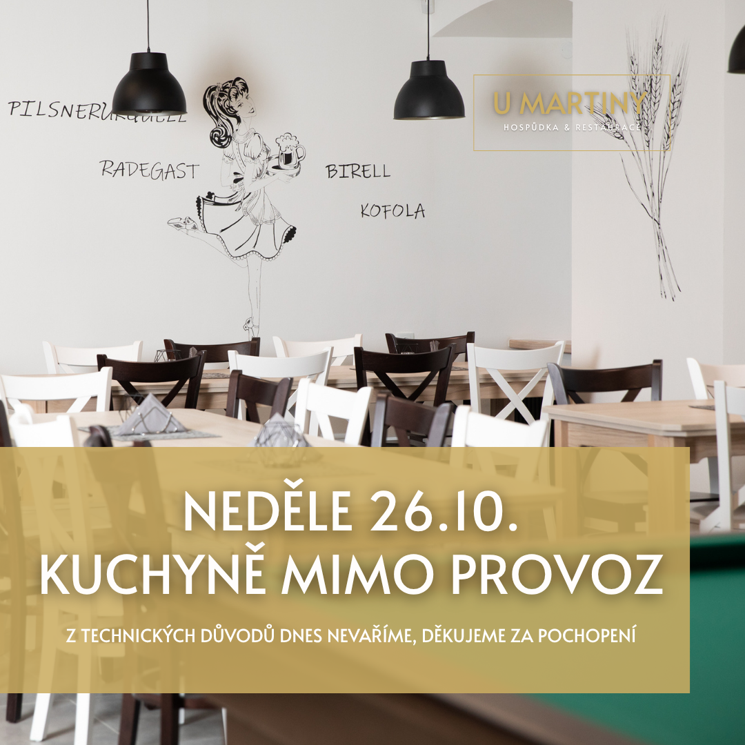 Vážení hosté, kuchyně je v neděli 26.10. z technických důvodů mimo provoz, děkujeme za pochopení!